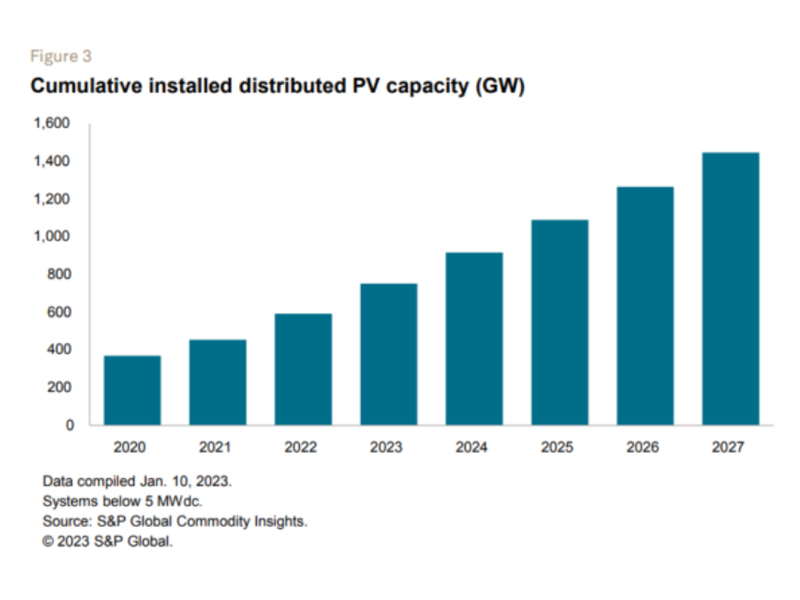 Distributed solar cemented its role as the dominant power supply in many mature markets during 2022. S&P Global expects this technology to expand into new consumer segments and markets in 2023. PV systems will increasingly integrate with energy storage, shared solar options will emerge, and new home/small business projects will gain grid access. Upfront payments remain common for residential projects, though power distributors are promoting diverse financing (long/short leases, PPAs). These models, widely deployed in the US over the past decade, are expected to spread globally. Commercial/industrial customers are also likely to adopt more third-party financing amid liquidity concerns, though S&P Global notes the challenge lies in contracting reputable off-takers.