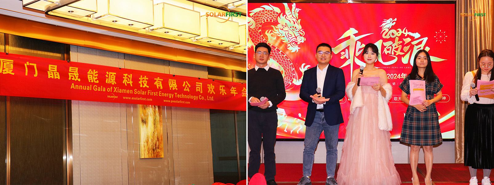 On January 19, Solar First Group hosted its 2024 annual ceremony at Howard Johnson Hotel Xiamen under the theme "Riding the wind and waves". Industry leaders, outstanding entrepreneurs, and all Solar First Group employees gathered to review the company's achievements over the past year and affirm their confidence for 2024.