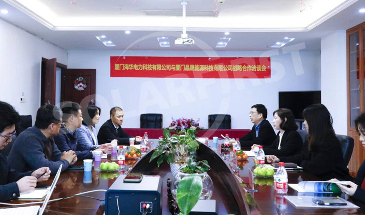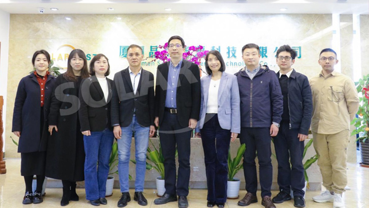 On February 2, 2023, Solar First Group welcomed a delegation from Xiamen Haihua Power Technology Co., Ltd. led by Jiang Chaoyang (Chairman, Party Branch Secretary, and General Manager), accompanied by Liu Jing (Chief Financial Officer), Dong Qianqian (Marketing Manager), and Su Xinyi (Marketing Assistant). Ye Songping (Chairman), Zhou Ping (General Manager), Zhang Shaofeng (Deputy General Manager), and other representatives from Solar First Group hosted the visit.