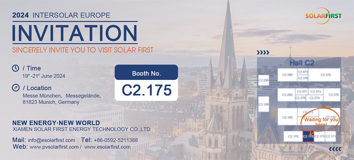 From June 19-21, 2024, Intersolar Europe – the global photovoltaic industry's premier exhibition – will commence at Munich's New International Expo Center. Solar First will present its solutions at Booth C2.175, featuring: