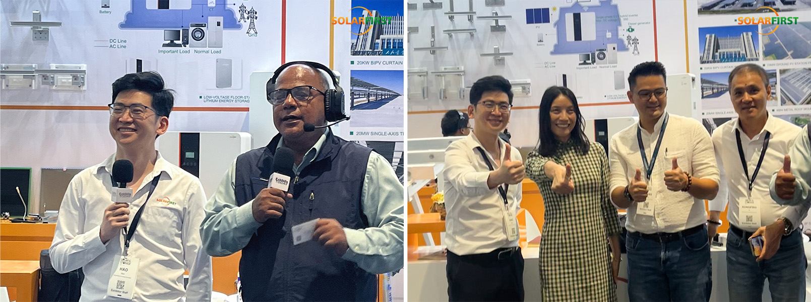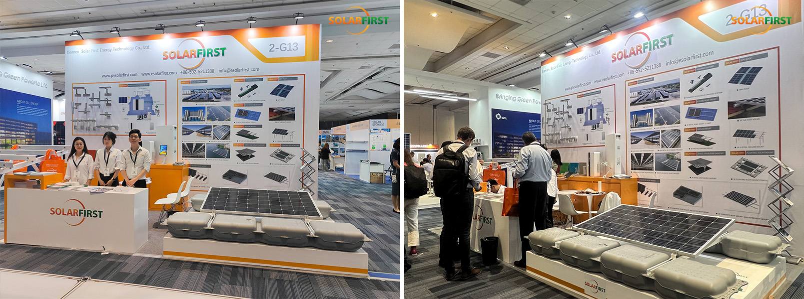 On opening day, Solar First attracted substantial interest through its next-generation PV products and established market reputation. Marketing Director Dennis provided detailed presentations on ground mounting systems and floating PV solutions, demonstrating scenario-specific applications that enhance energy conversion efficiency, reduce costs, and maximize ROI.