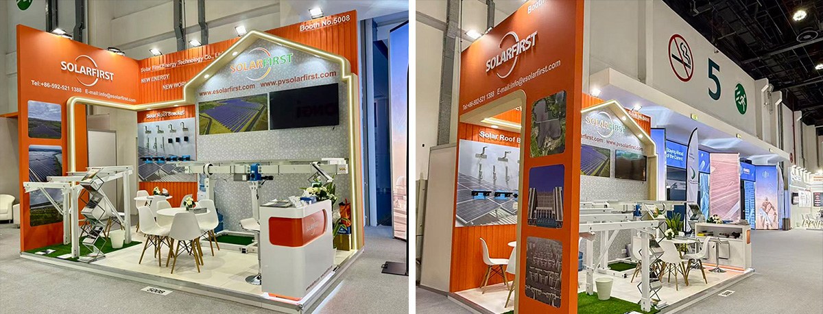 Although the Middle East boasts abundant sunshine and diverse terrain, it also faces extreme natural challenges such as strong winds, sandstorms, and high temperatures, placing extremely high demands on the environmental adaptability and reliability of photovoltaic products. In response, the tracking system, multi-terrain fixed supports, and high-performance BIPV solutions exhibited by Solar First Group are precisely tailored to the characteristics of the local natural environment, aiming to comprehensively improve the power generation efficiency and operational stability of photovoltaic power plants throughout their entire lifecycle.