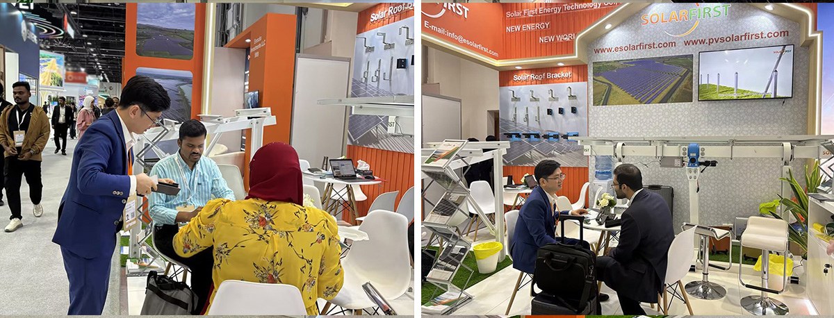 From January 13th to 15th, the World Future Energy Summit 2026 (WFES) was held at the Abu Dhabi National Exhibition Centre. As a highly influential clean energy event in the Middle East, WFES brought together top experts and leading companies in the global renewable energy field. On this occasion, Solar First Group showcased its full range of photovoltaic solutions, including tracking systems, fixed brackets, and BIPV (Building Integrated Photovoltaics) brackets, at booth 5008, demonstrating to global visitors its highly adaptable product system developed for the harsh environment and complex terrain of the Middle East.