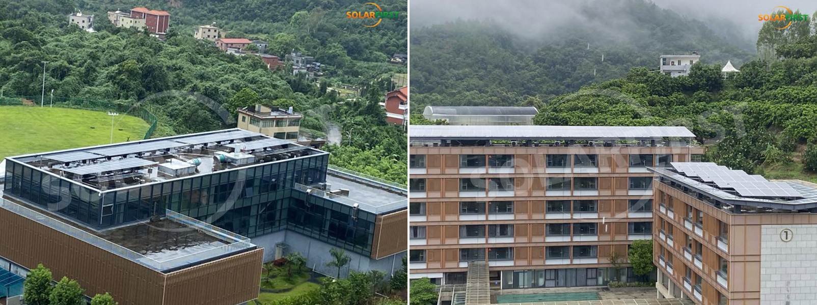 For the Tong’an project, Solar First implemented a steel bracket solution that comprehensively accounted for variables including roof profiles, orientations, building heights, load-bearing capacities, surrounding environments, and extreme weather risks. The design strictly adhered to national structural and load standards, optimizing both power generation efficiency and structural resilience. On sections of the roof, brackets were elevated according to existing landscape structures.