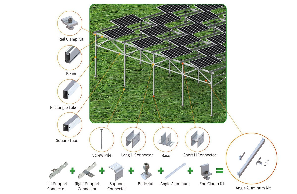 Constructed from high-strength anodized aluminum AL6005-T5 and stainless steel SUS304, the system provides excellent corrosion resistance and structural reliability, capable of withstanding wind loads up to 60m/s and snow loads up to 1.4 kN/m². With screw pile or concrete foundation options, the solar ground racking system is both easy to install and cost-effective.