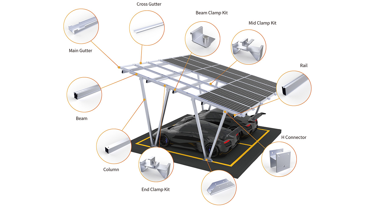 Harness the power of the sun with our high-strength aluminum solar carport—an efficient structure that provides sheltered parking while generating clean energy. Suitable for residential and commercial use, this system offers a waterproof design that effectively directs rainfall from panel gaps through integrated drainage cutters and pipes, ensuring vehicles remain protected from sun, wind, and rain.