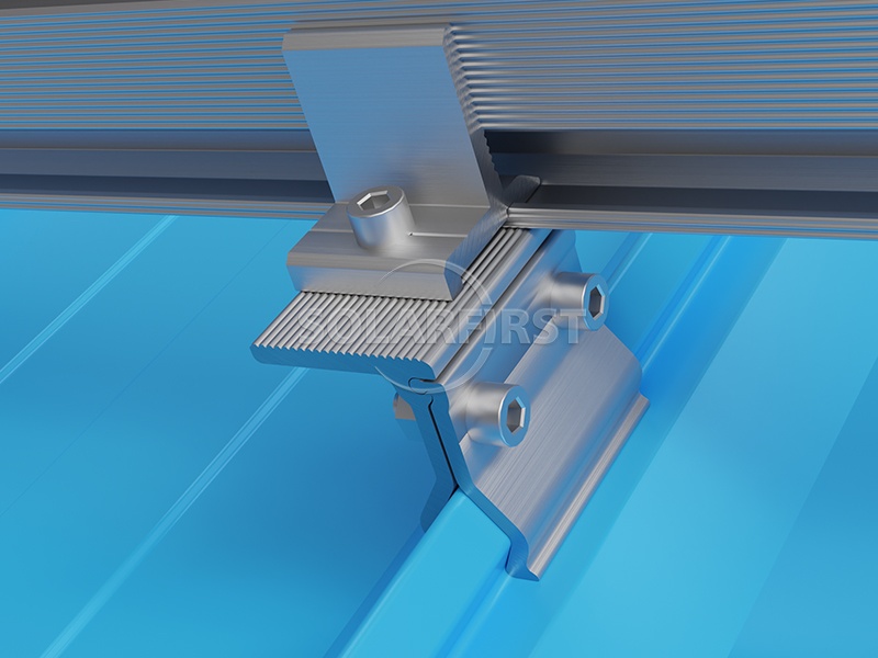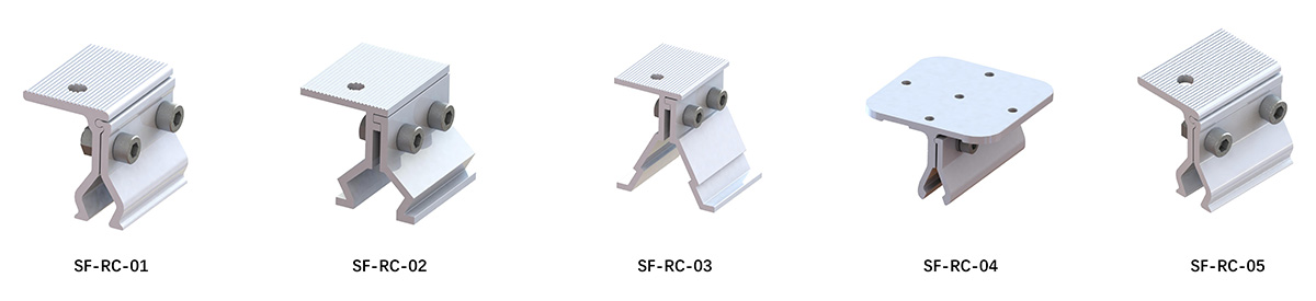 The SF Metal Roof Mount with Angular Roof Clamps provides a specialized angular solar metal roof mounting solution designed for angular-type metal roofing sheets. This non-penetrating solar roof mount kit features a simple yet effective design that ensures quick installation and reduced overall costs.