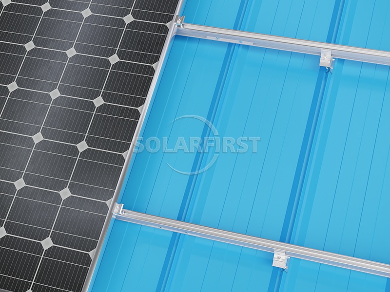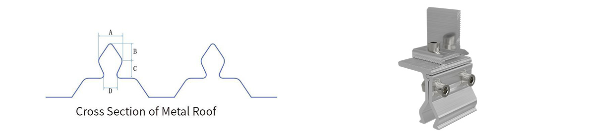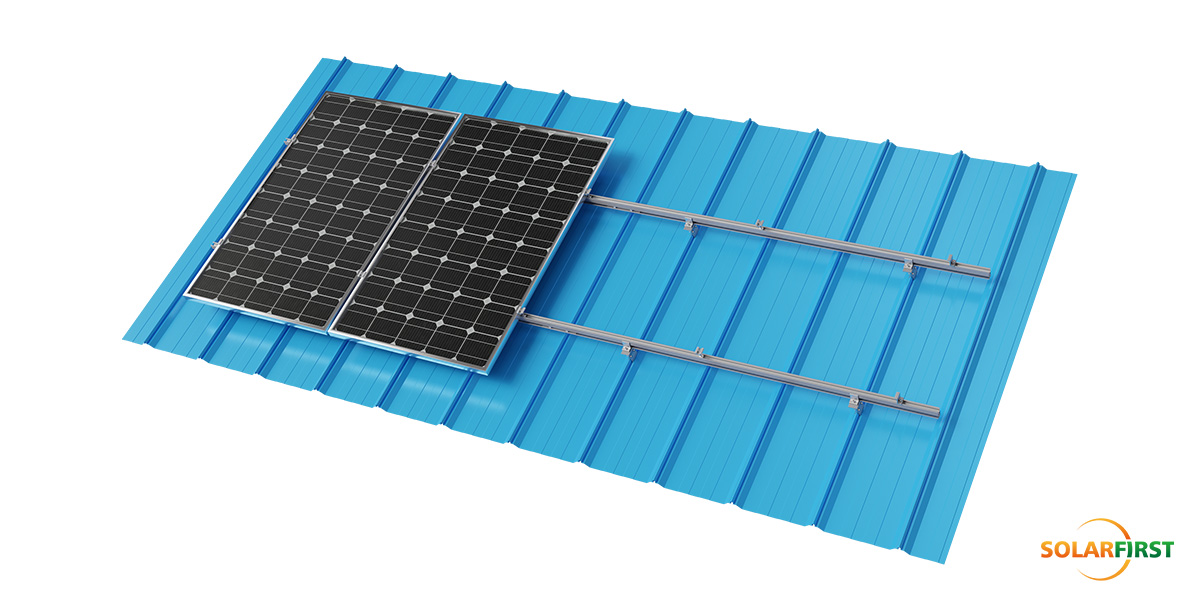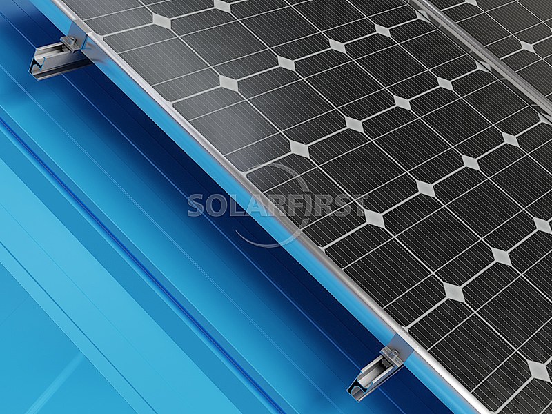The system utilizes lightweight aluminum metal roof mounting bracket components and rails that minimize additional load on the underlying roof structure. The specifically engineered angular solar clamps roof mounts are designed to accommodate various angular roofing sheet profiles, ensuring secure attachment without roof penetration. For enhanced flexibility, the roof clamp can be combined with L-foot brackets to achieve optimal solar module elevation and positioning.