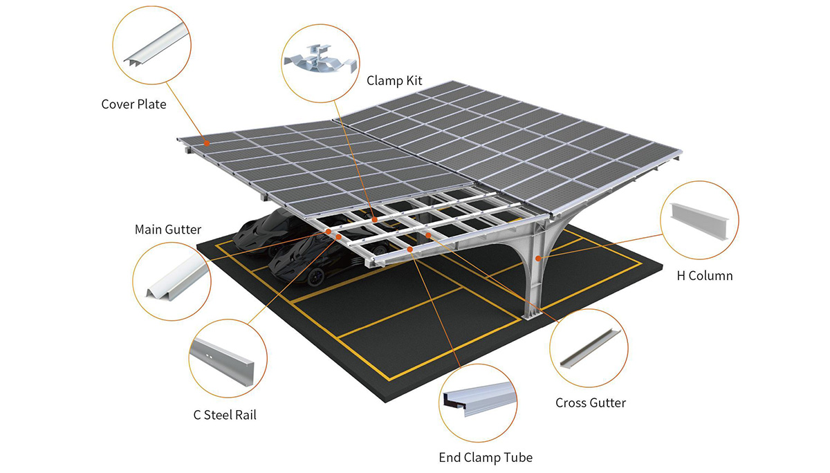 The cantilever steel carport features a unique waterproof design that efficiently channels rainfall from the gaps between solar modules through integrated drainage cutters, pipes, and channels—ensuring reliable weather protection without relying on adhesives or rubber fillers. Its versatile cantilever structure adapts seamlessly to both angled and straight parking layouts, maximizing space utilization and vehicle coverage.
