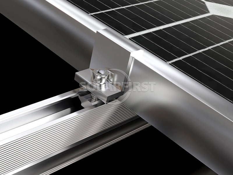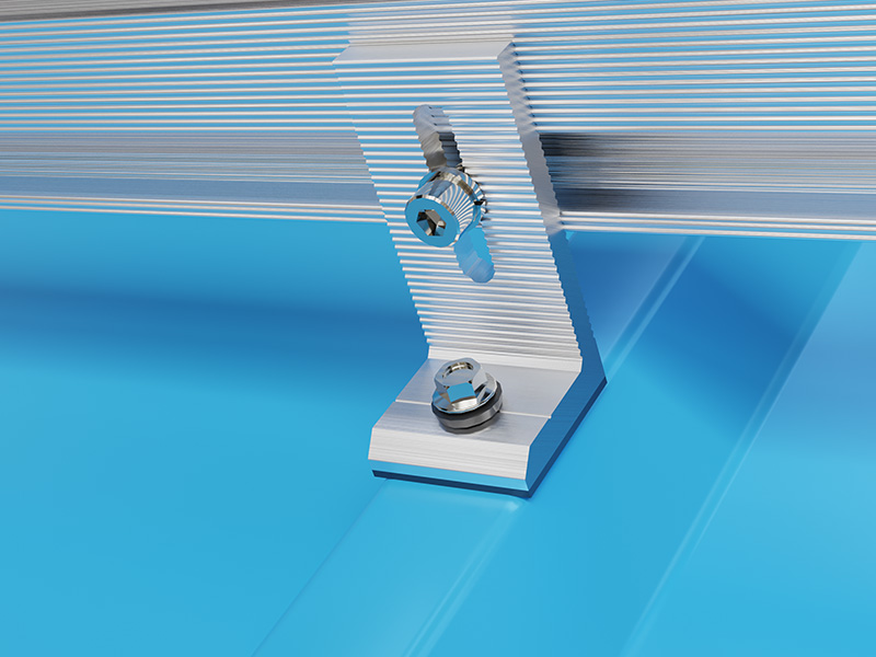 The installation process begins with marking and drilling, followed by the attachment of the L-foot kit using self-tapping screws. The rails are then secured and connected with dedicated connectors, creating a continuous support structure. PV modules are placed onto the assembled rails and are firmly fixed in place using pre-assembled end and mid clamps. This clear, step-by-step process ensures quick deployment and lower labor costs.
