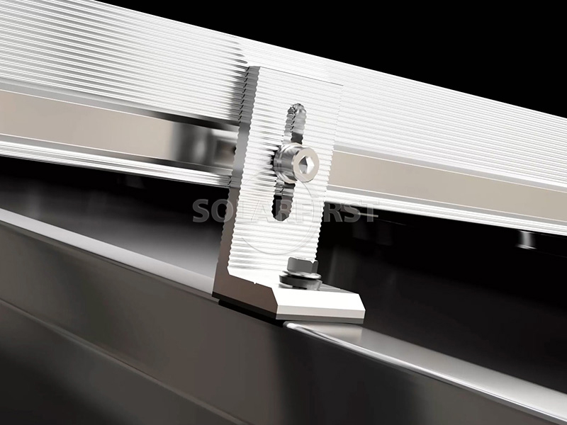 Despite its simple installation, the system is engineered for high performance, capable of withstanding wind loads up to 60 m/s and snow loads of 1.4 kN/m². It is constructed from durable anodized aluminum AL6005-T5 and stainless steel SUS304, and is backed by a 10-year warranty, ensuring long-term reliability on the roof.