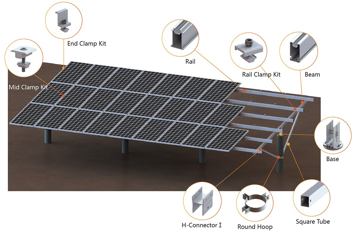 This solar ground mount kit combines efficient design, environmental compatibility, and cost-effectiveness, making it an ideal choice for large-scale projects where traditional foundations are not feasible.